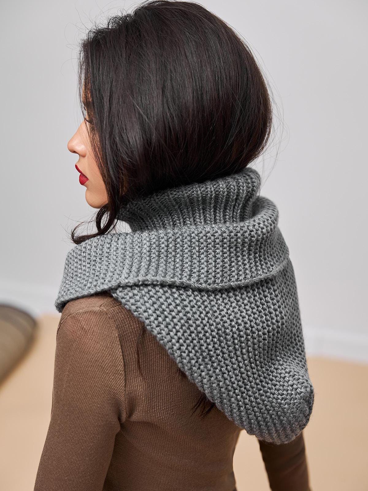 The multifunctional winter accessory is made of semi-woolen yarn.