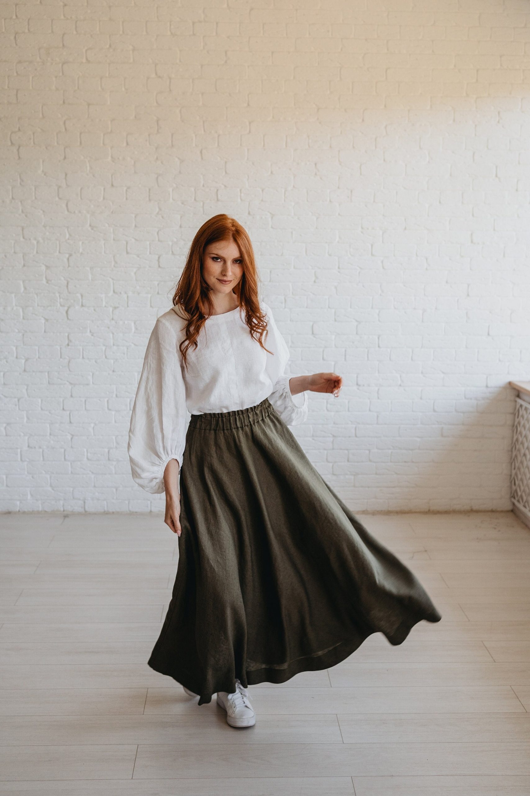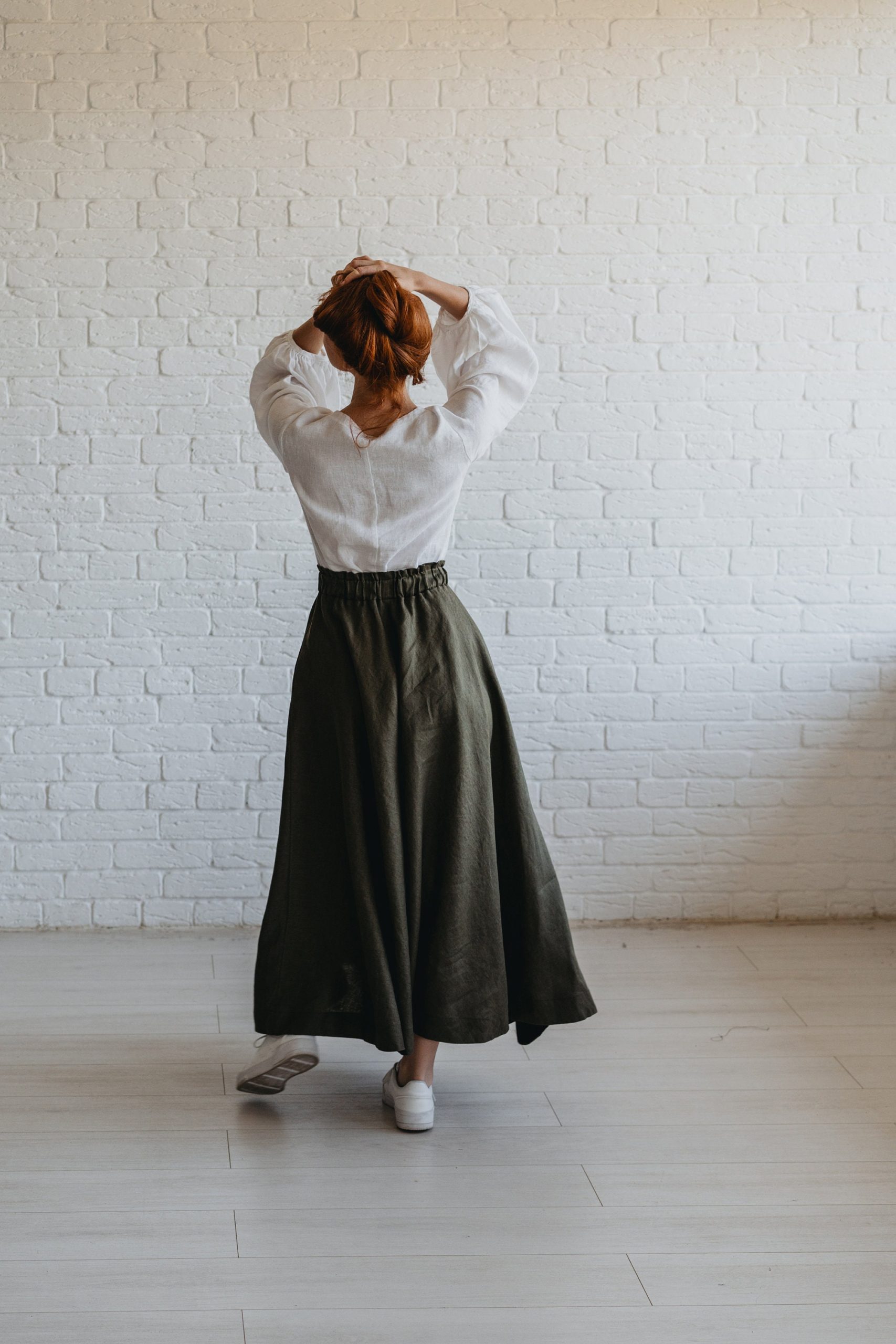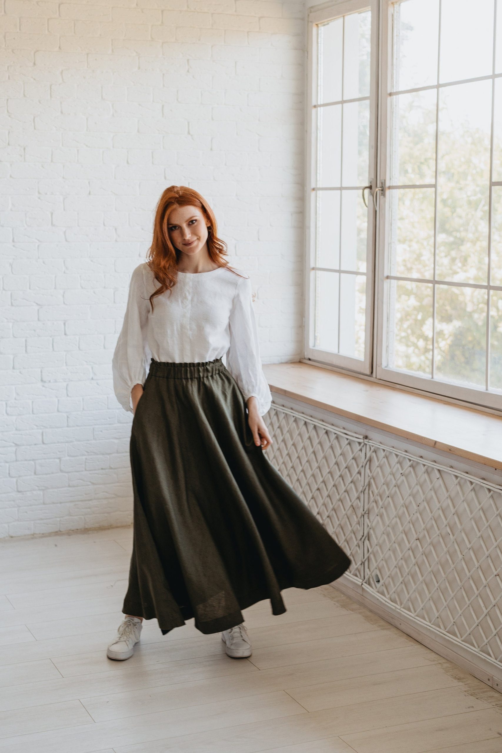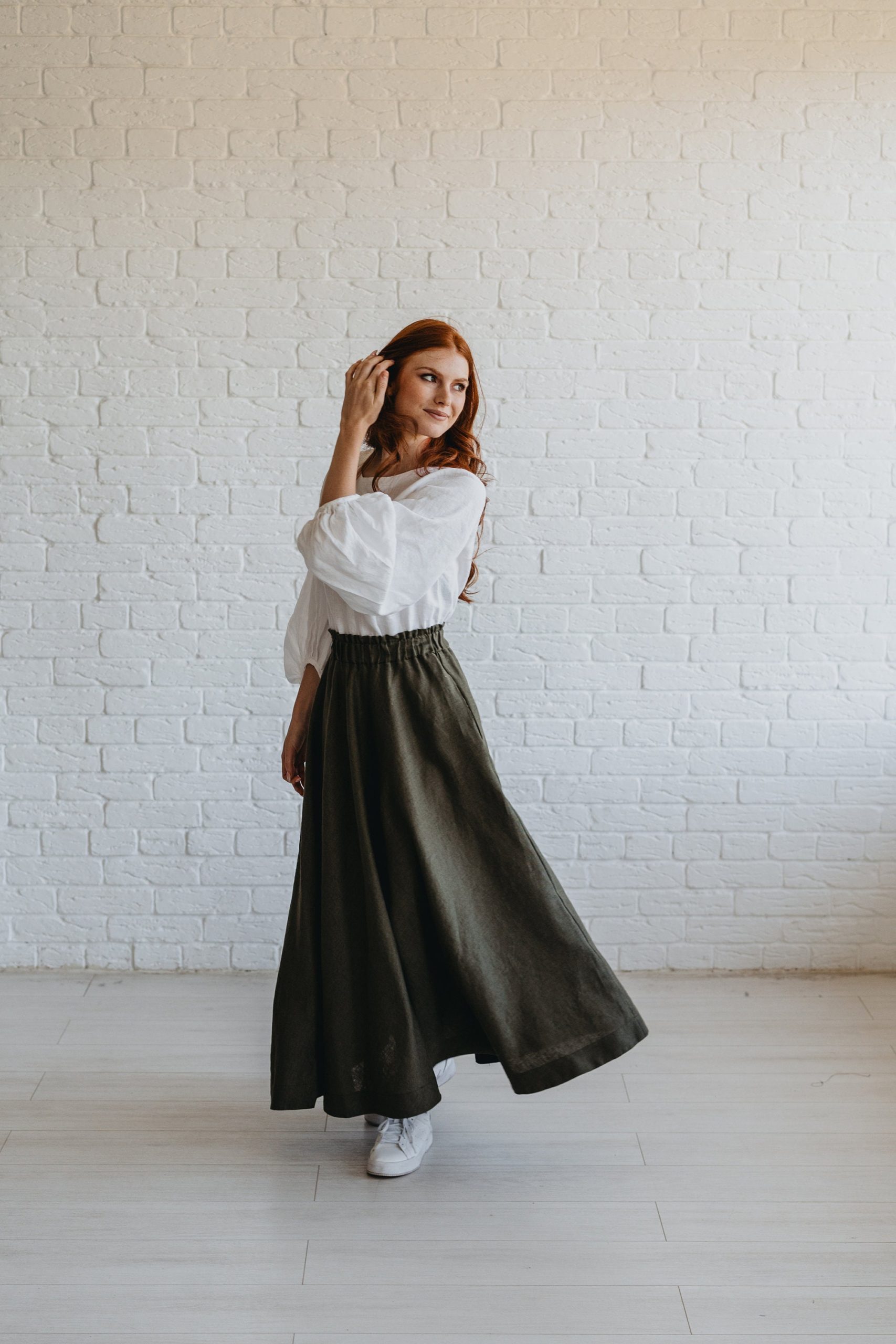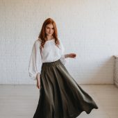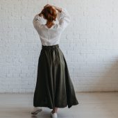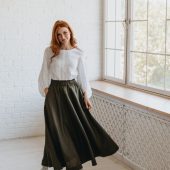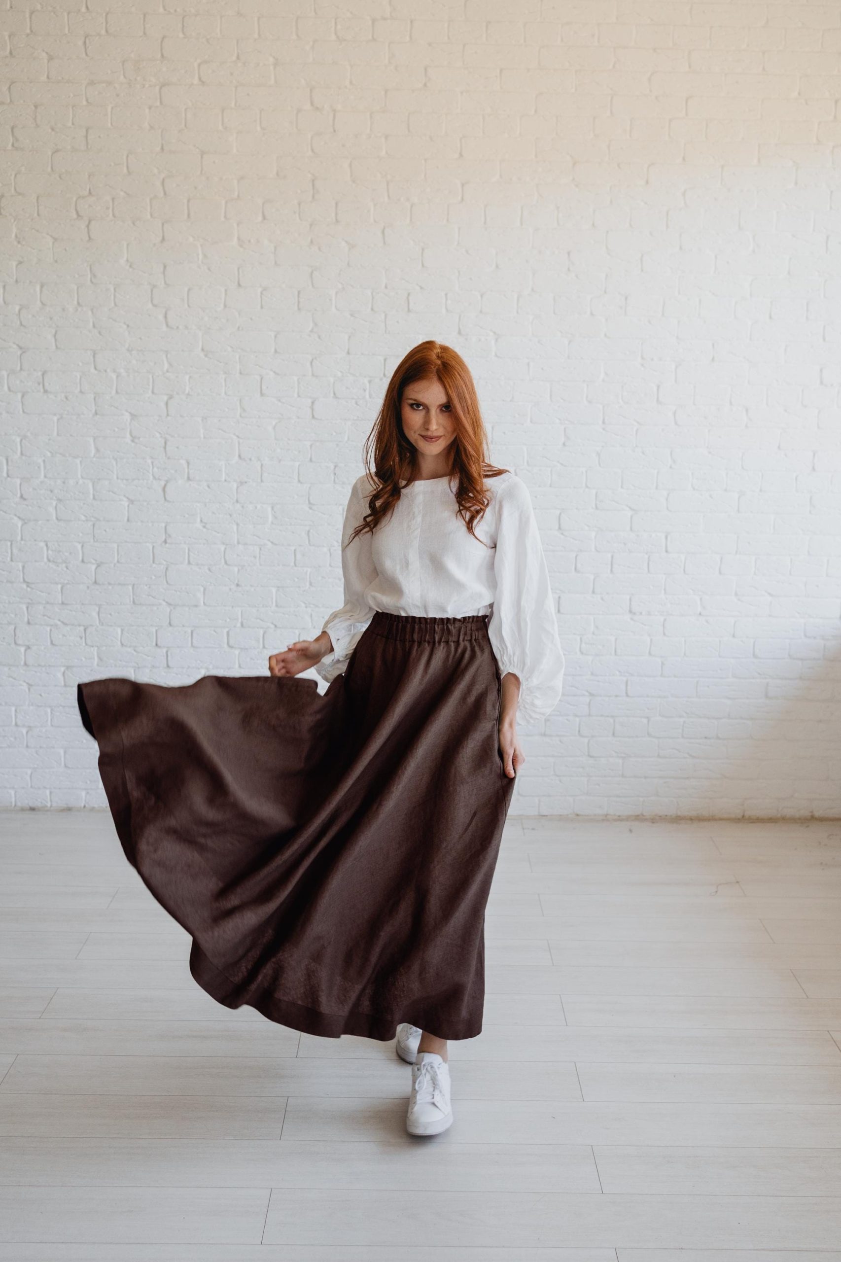 Chocolate Brown Heavyweight Linen Skirt With Pockets And