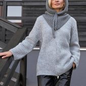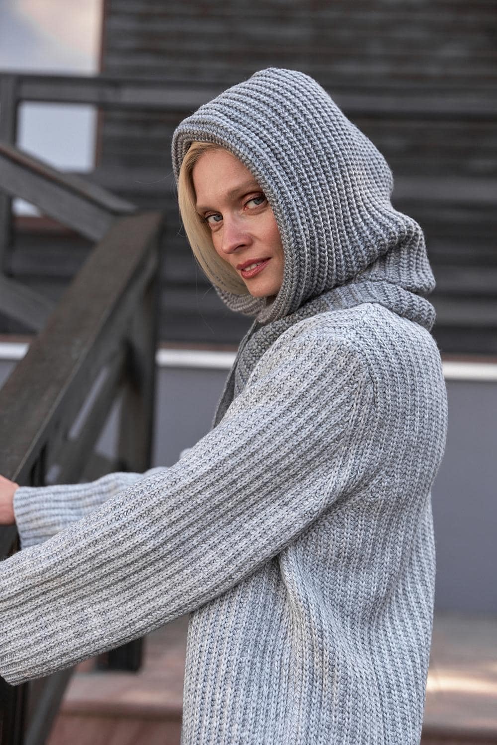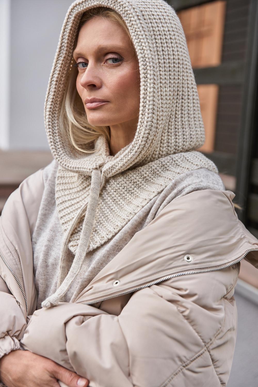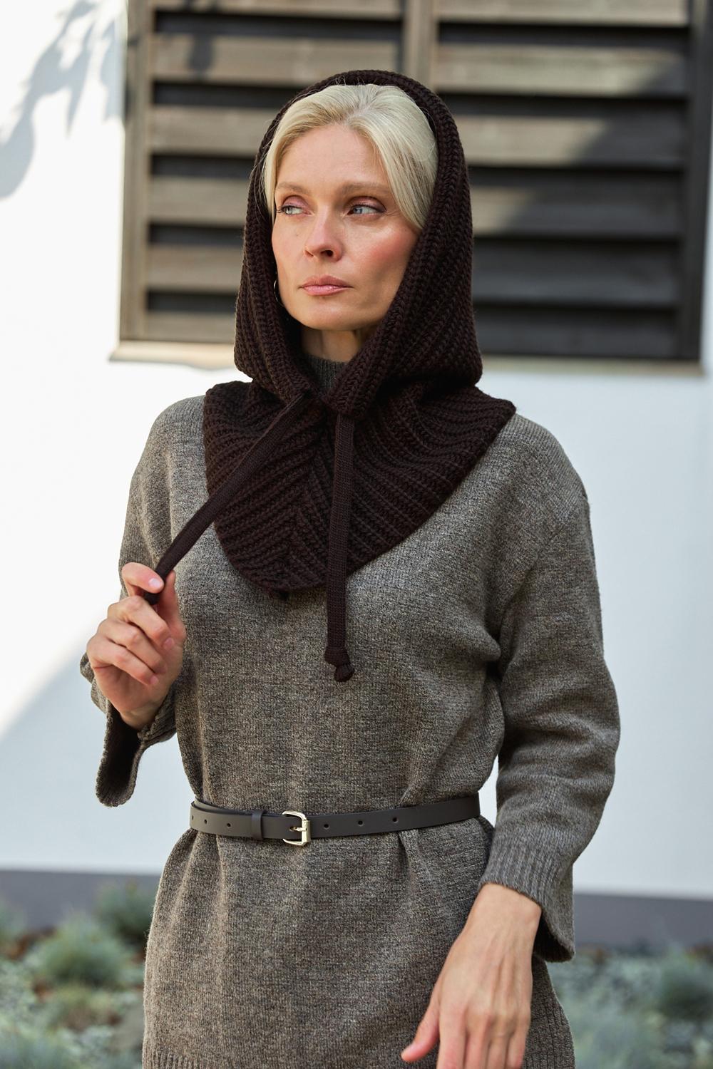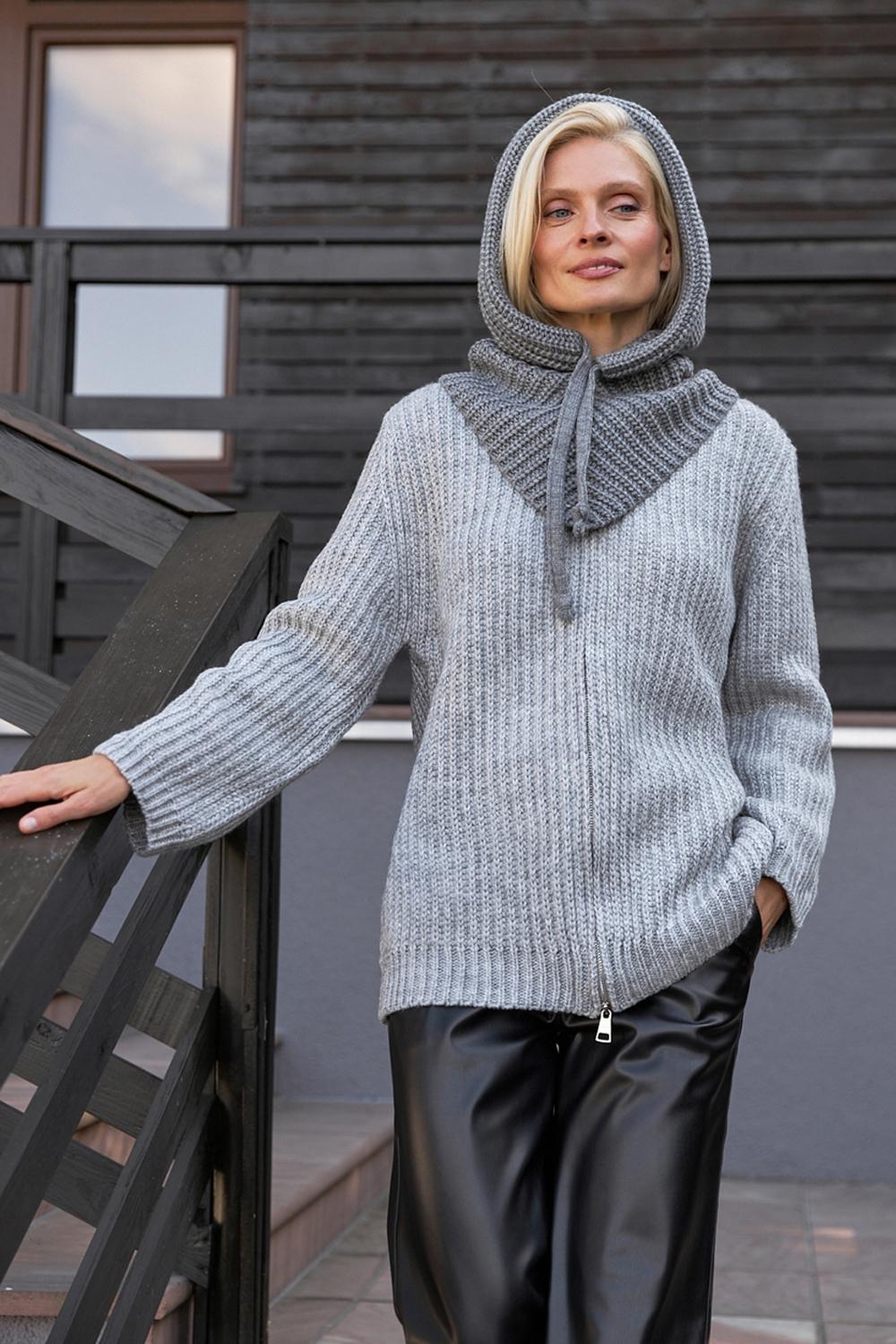 Gray Hooded Scarf Womens Snood Knitted