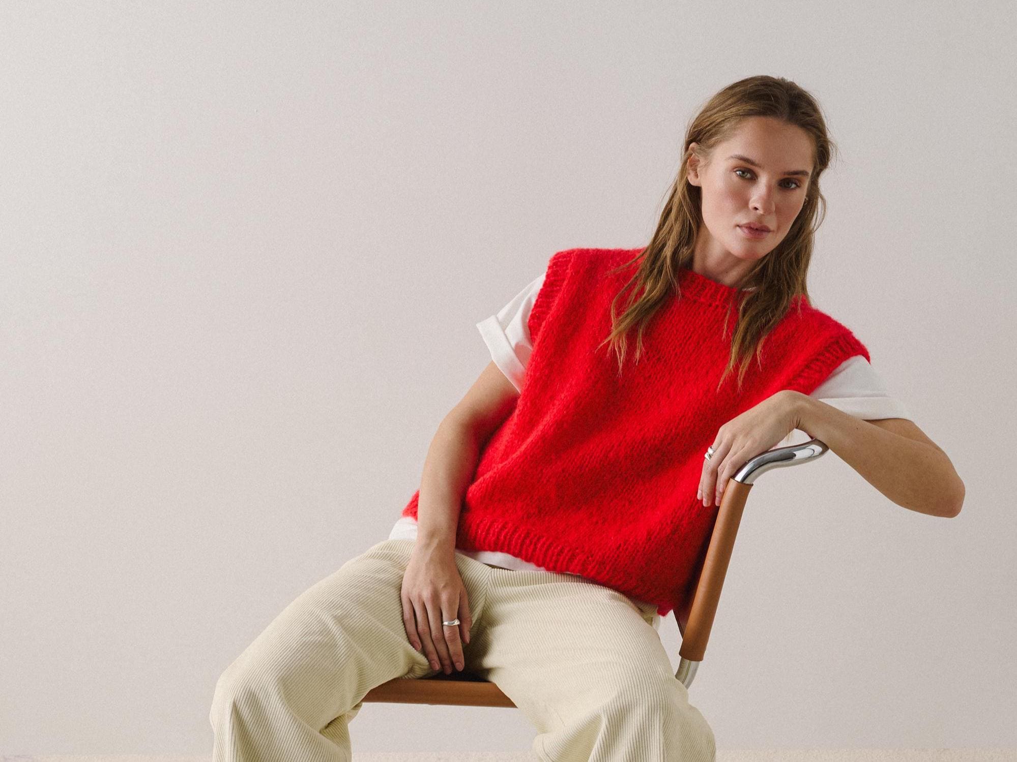 Hand-knitted Red Mohair Vest: Women's Cozy Knitwear