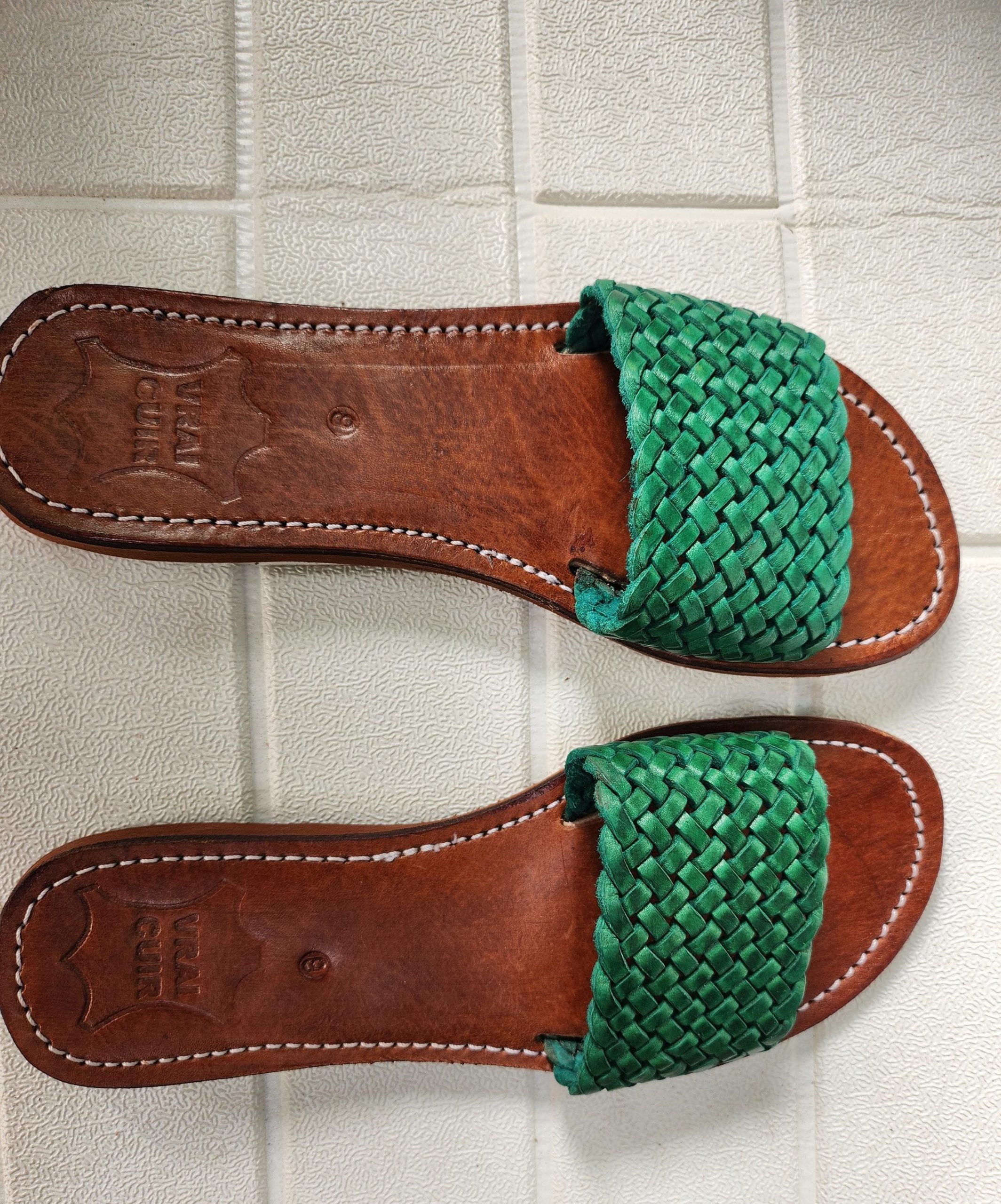 Step into timeless elegance with these handmade Moroccan sandals – a perfect blend of style and comfort! Featuring a rich brown leather sole and a stunning woven green leather upper, these handcrafted sandals are designed for effortless summer wear. Whether you’re strolling the beach or pairing them with your favorite dress, these sandals for women are a must-have.