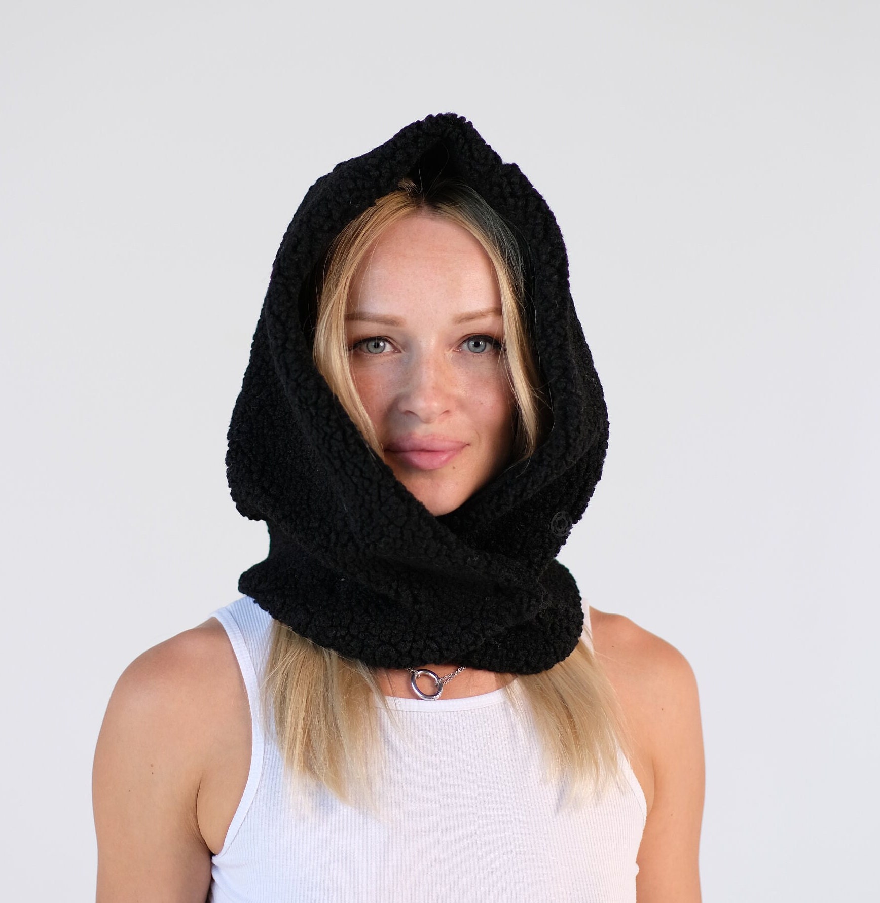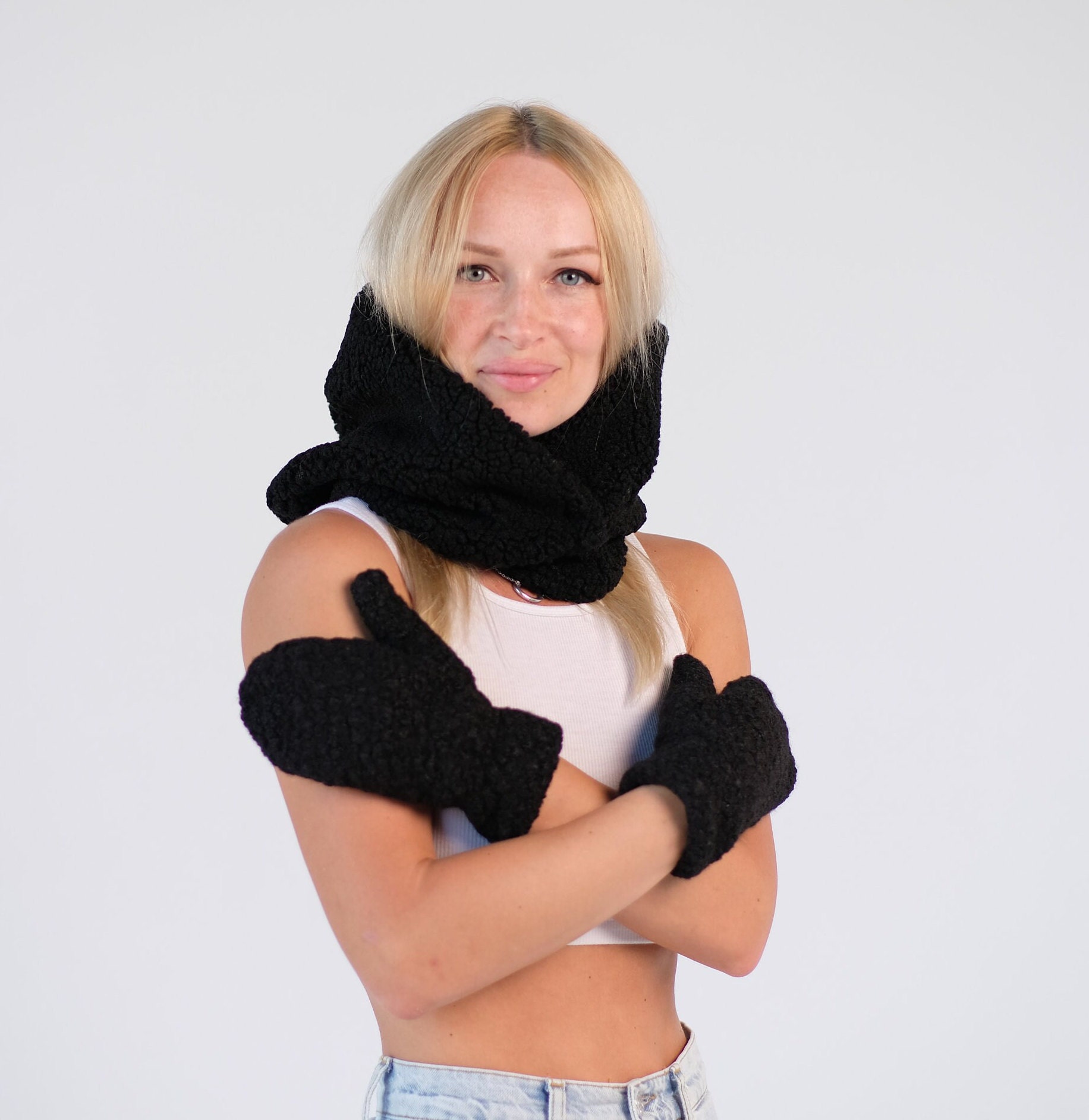 Hooded Scarf Mittens Set. Women Sherpa Set. Fleece Mittens Gloves. Hooded Cowl. Winter Warm Set. Trending Now. Christmas Gift for Her