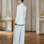 Elevate your style with this elegant women’s suit set made from premium diagonal suiting crepe. The set includes a tailored blazer and wide-leg trousers with a flattering high waist. Perfect for business. formal events. or a polished everyday look.