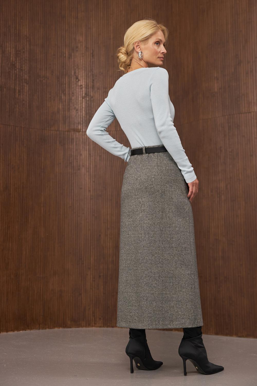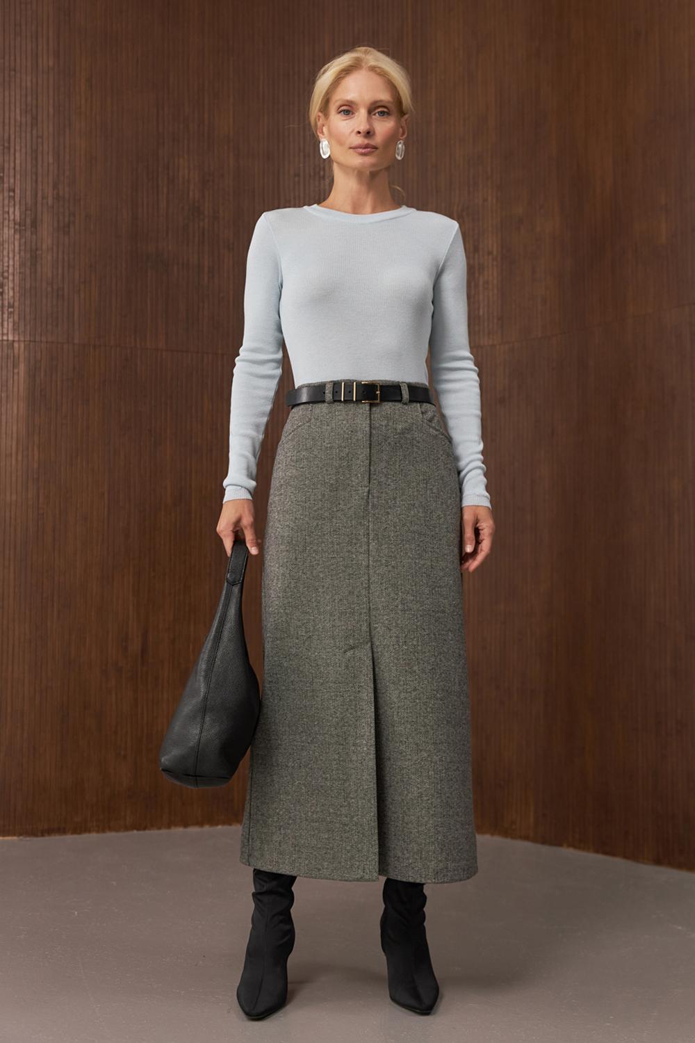 High Waist Wool Skirt. Elegant Midi Skirt with Slit. Office and Everyday Wear