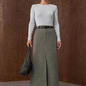 This skirt seamlessly transitions from workdays to weekends. Style it with knitwear. blouses. or turtlenecks to achieve a timeless minimalist look.