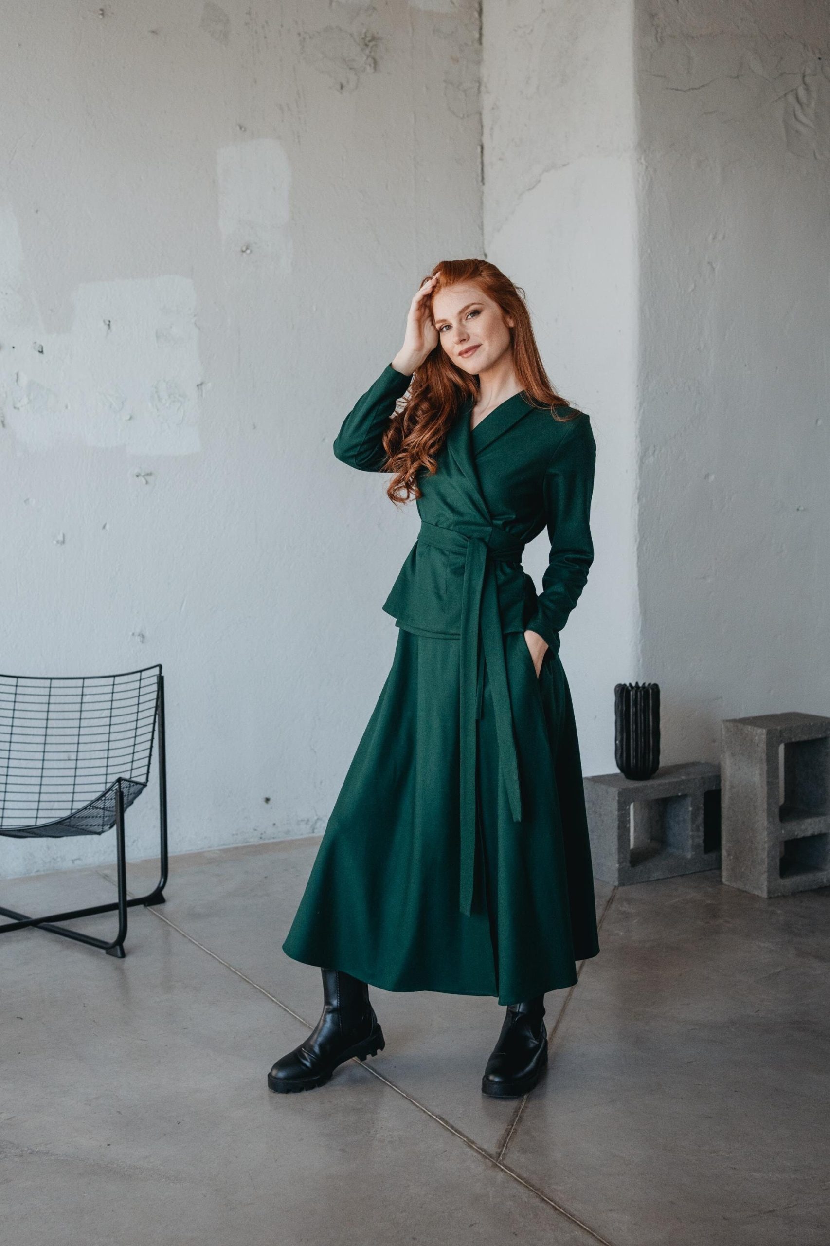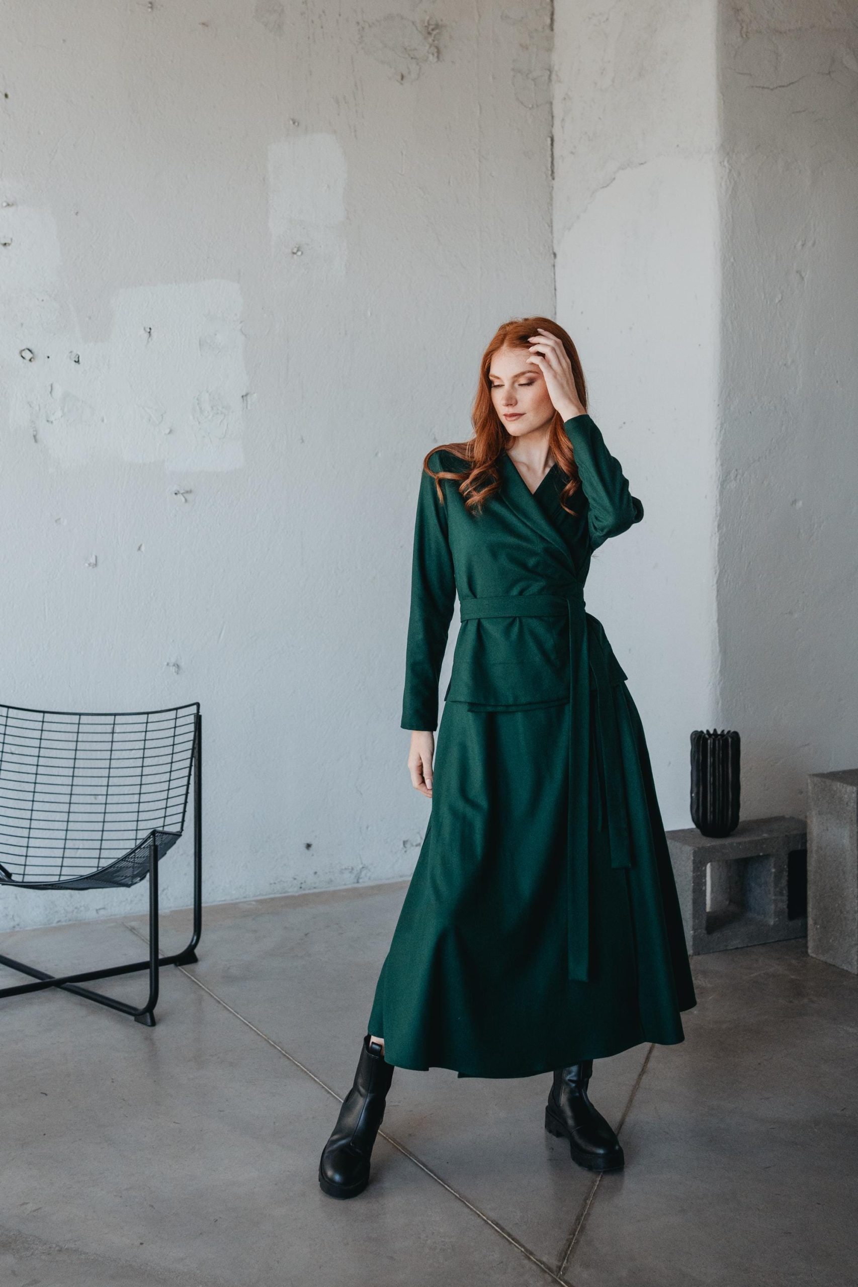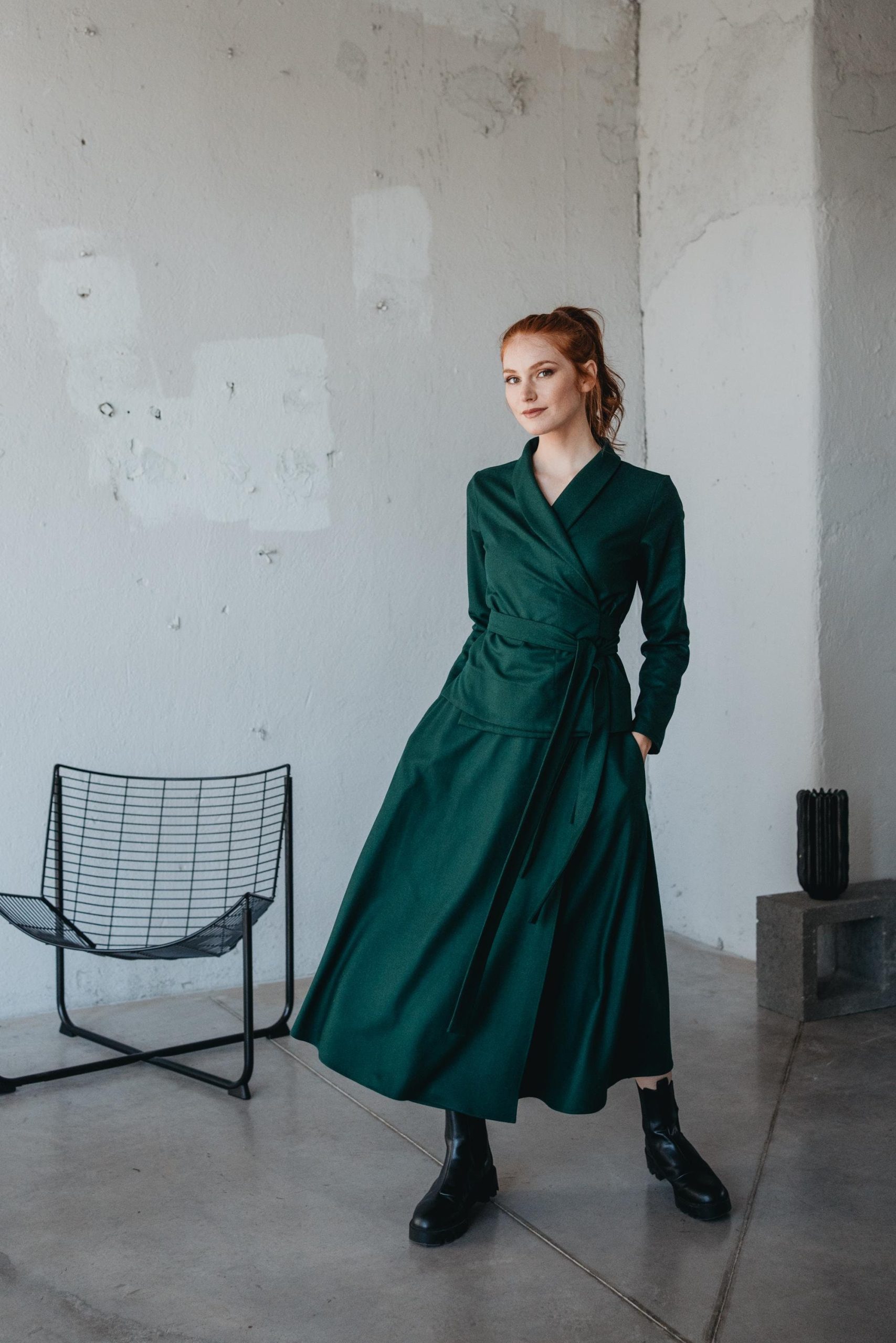 Wool Wrap Skirt And Top Set Winter Clothing